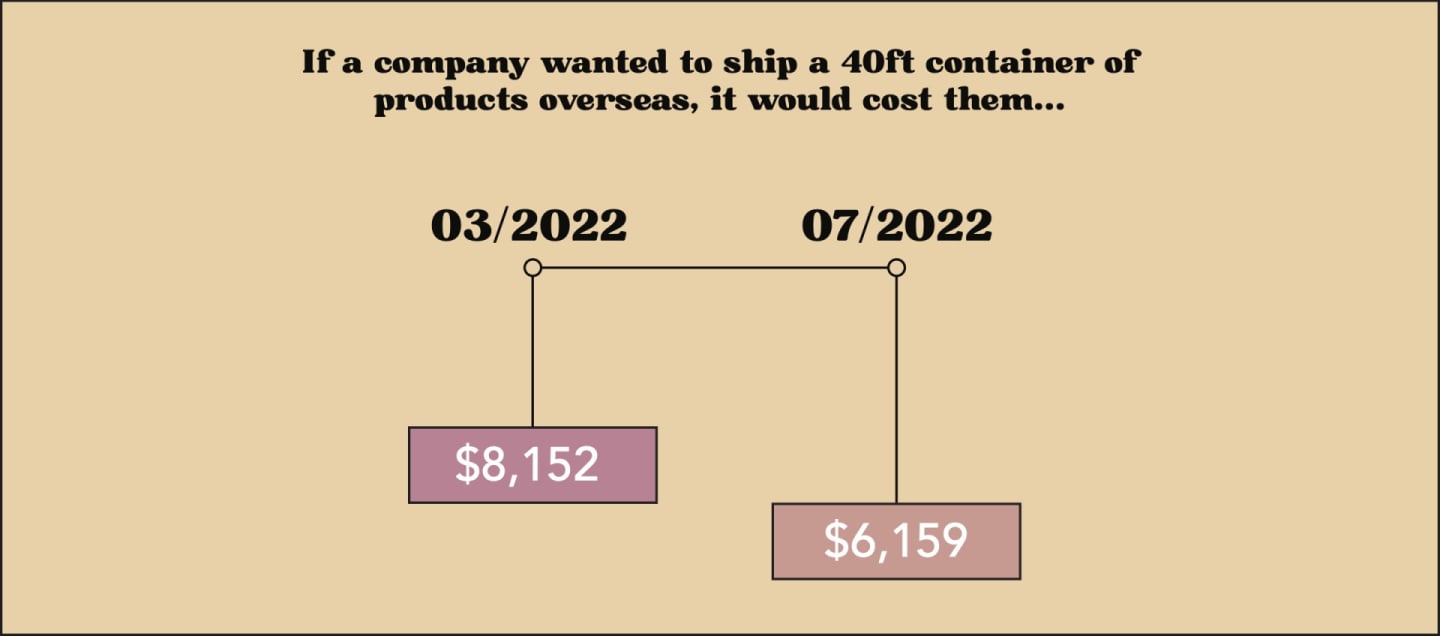 While the past few years have certainly been difficult for many of us, there are signs that the situation is starting to get better, at least as far as high furniture prices and inflation are concerned. Since the highest point in September of 2021, the price of shipping containers has been slowly but steadily declining. In March of 2022 the average price of shipping a 40ft container overseas was $8,152, and, as of July ,the average price was down to $6,159.