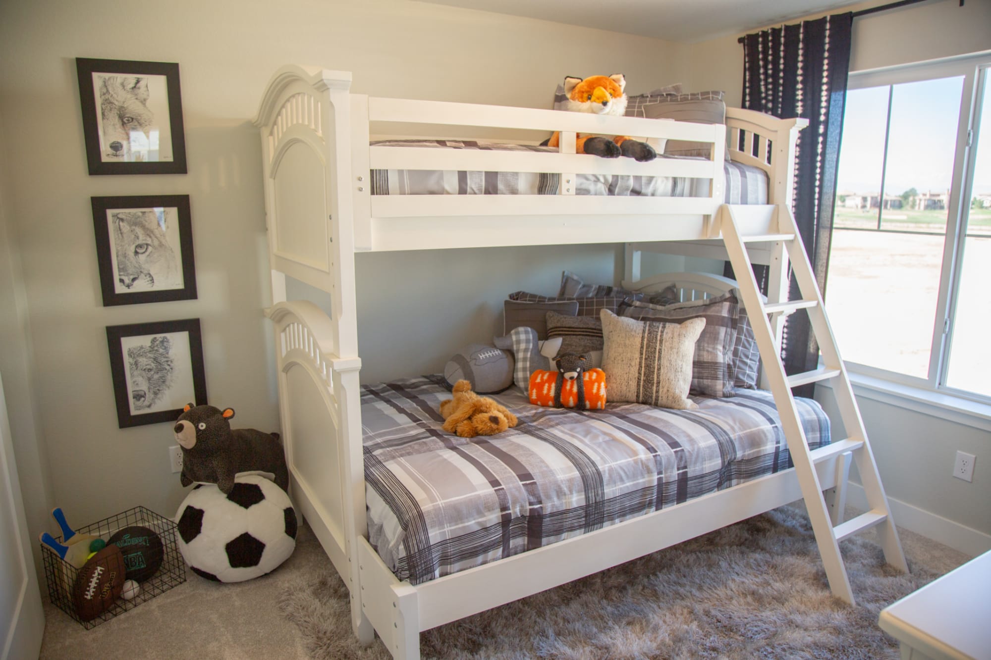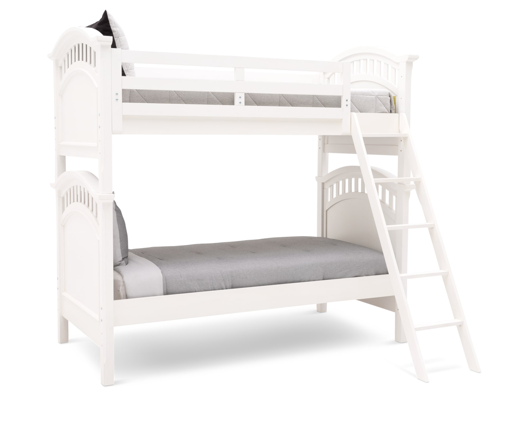 The bunk bed is available in twin-over-twin, or twin-over-full sizes.