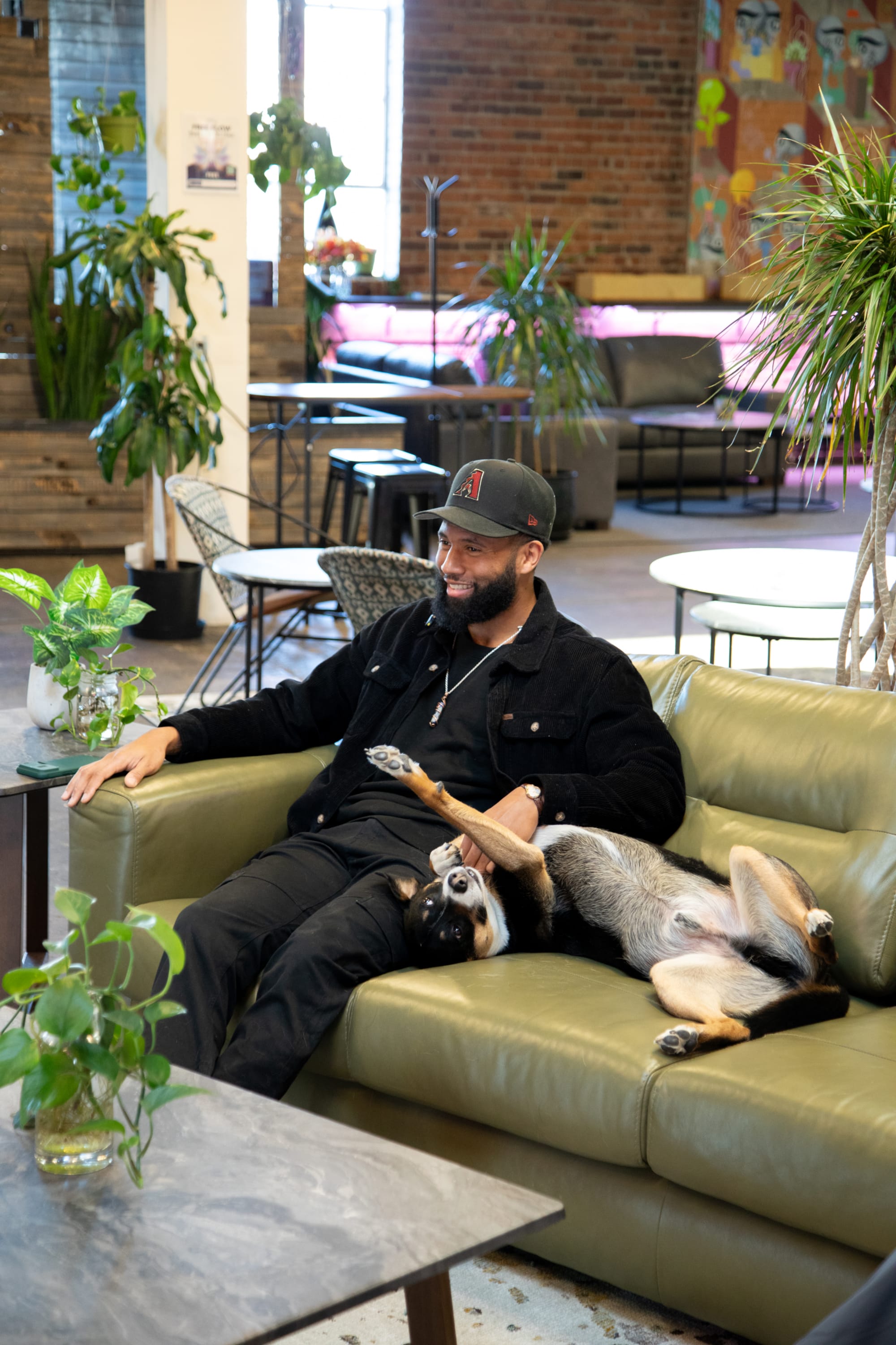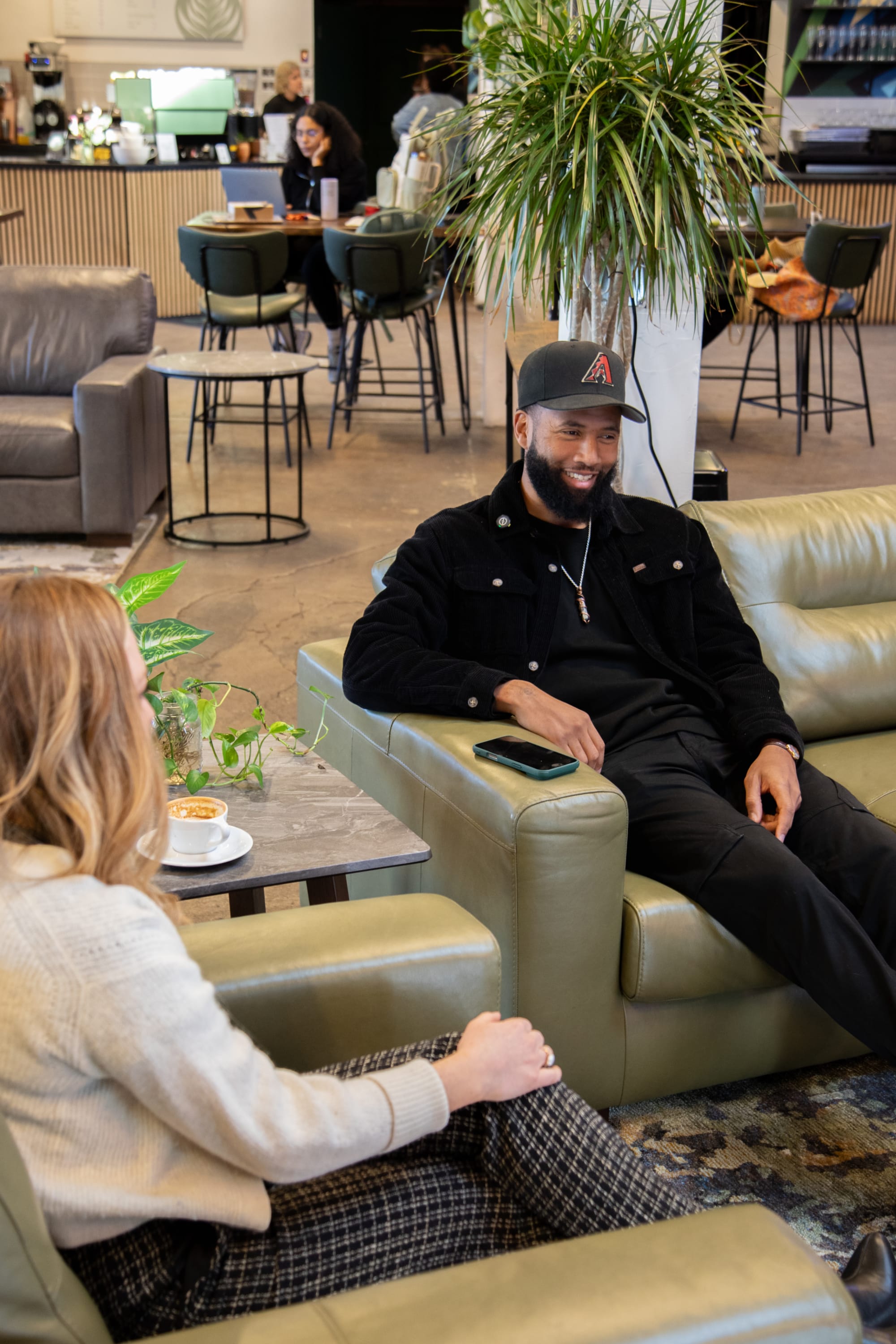 The best sofas don't just fill a room, they set the tone for it. Jevon knew he wanted Green Spaces to feel like somewhere people could drop in, open a laptop, stay for a conversation, and come back tomorrow. The sofa had to carry some of that weight in personality, a profile that says settle in, and a material that can handle real life without anyone hovering over a coaster.