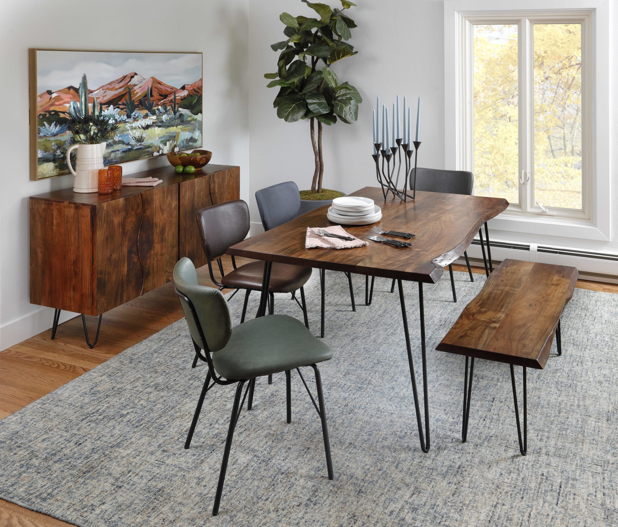 Together with the Evolution area rug, they create a layered look that feels well-traveled and intentional. That combination – a rug with personality, an accent piece with texture and character – is one of the easiest ways to make a living room come alive.