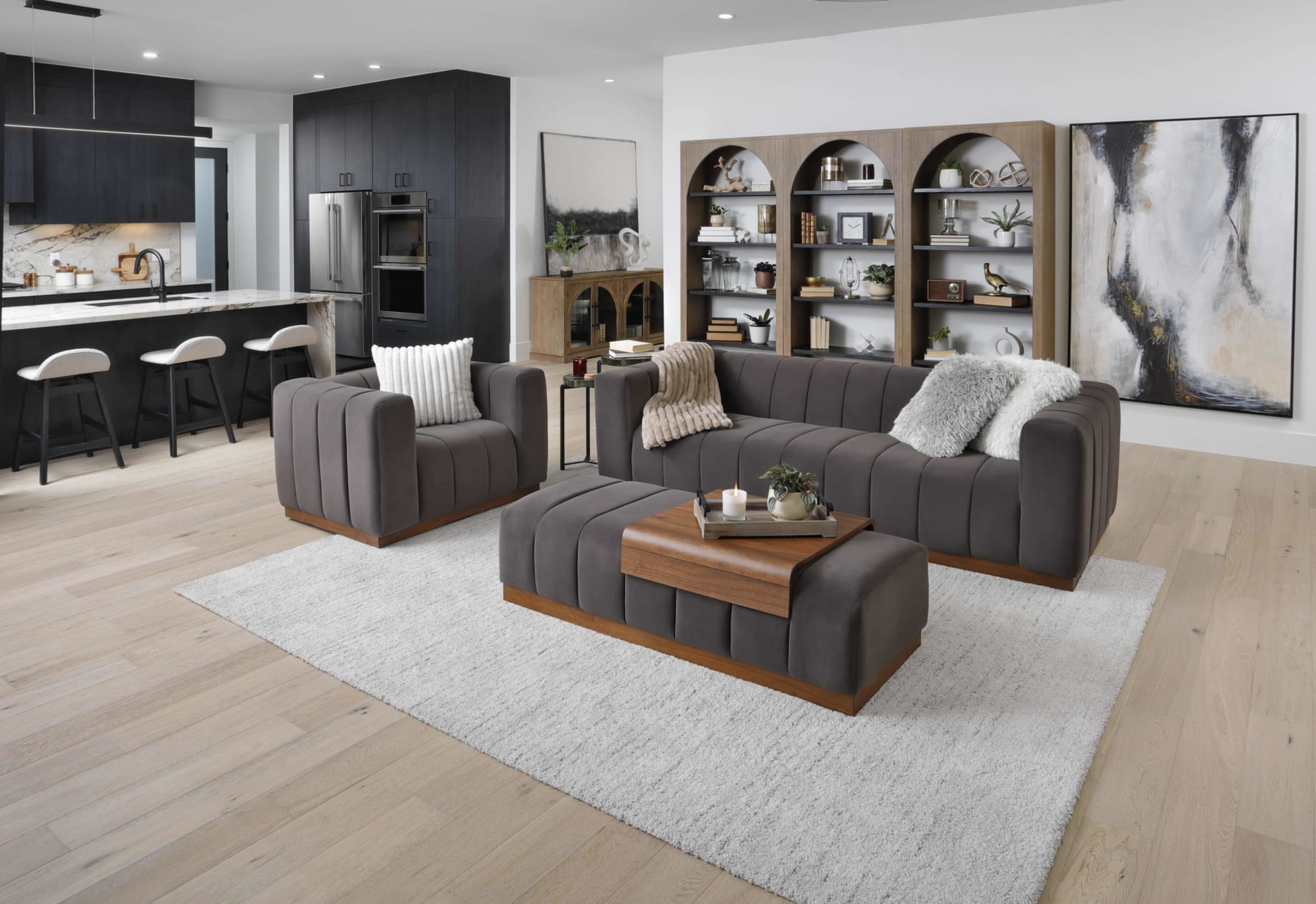 - Texture over pattern: prioritize boucle, linen, and woven materials on upholstery and accent pieces to add warmth without visual noise.