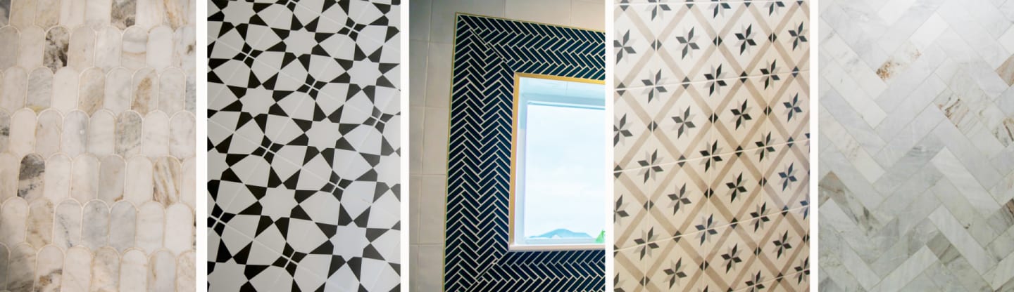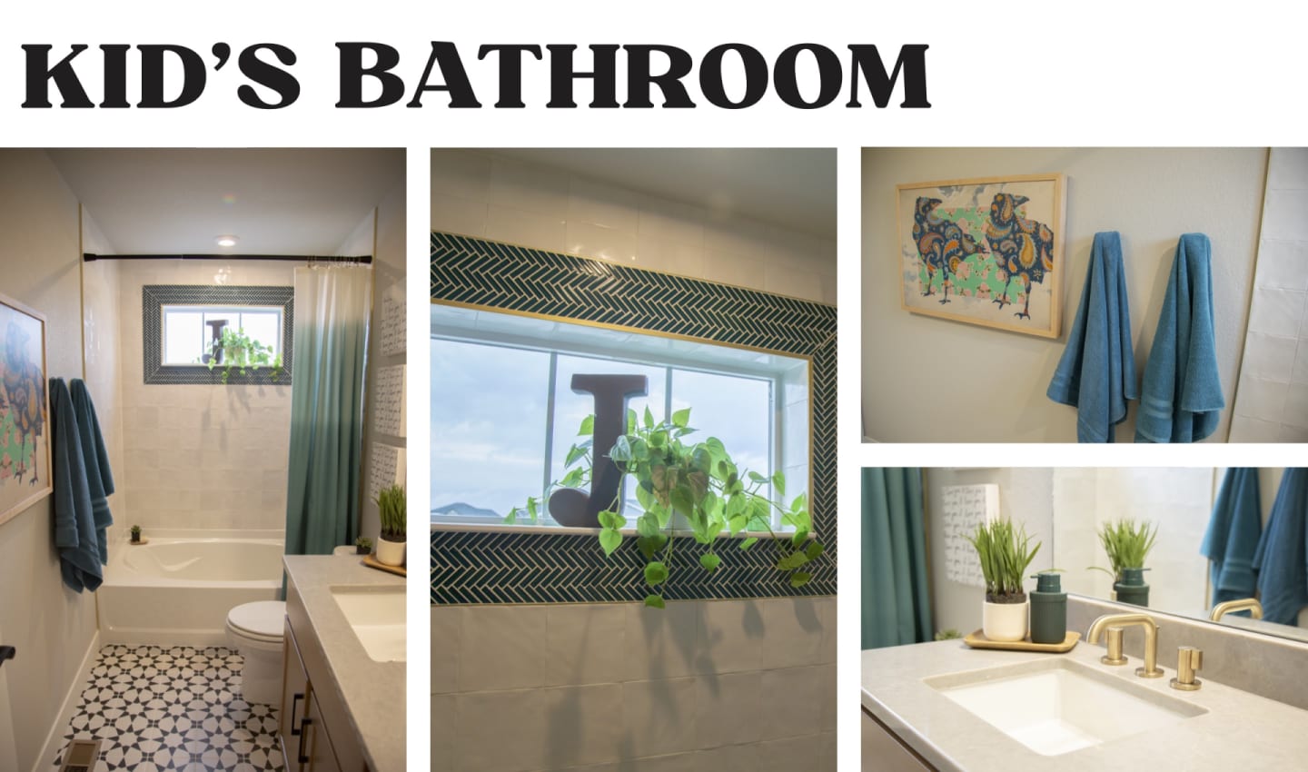 After my initial walkthrough, I started to think about what kinds of styles would best complement these key features of the home. With its high-end countertops, contrasting black-and-white motifs, and variety of lighting fixtures, it quickly became obvious that this was the perfect space to showcase today’s more exciting contemporary look. Once I had the style in mind, I could then start thinking about how to tailor it to the space. Based on the existing design features, I wanted to try to combine contemporary foundational pieces with accents that have either rustic, traditional, or boho design influences; and I also wanted to focus on black-and-white color contrasts to complement the tiling patterns in the bathrooms.