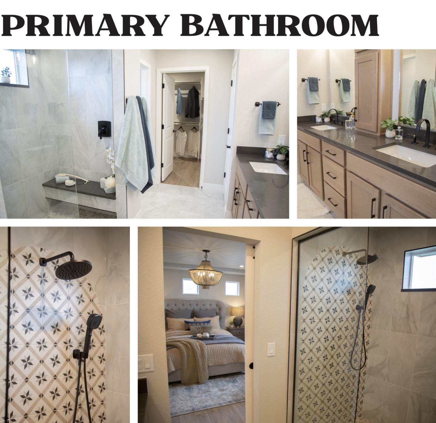 - The tiling - The use of tiling is probably the design feature that sets this year’s Dream Home apart from any other, in my mind. In each of the primary bathrooms there are these beautiful patterned tiled motifs made from black and white porcelain that are just breathtaking. Oakwood’s designer, Kayla, told me she paired these tiled motifs with other more natural-looking tiled elements to give the home a Spanish vibe, which I loved because they make the home feel both down-to-earth and effortlessly sophisticated.
