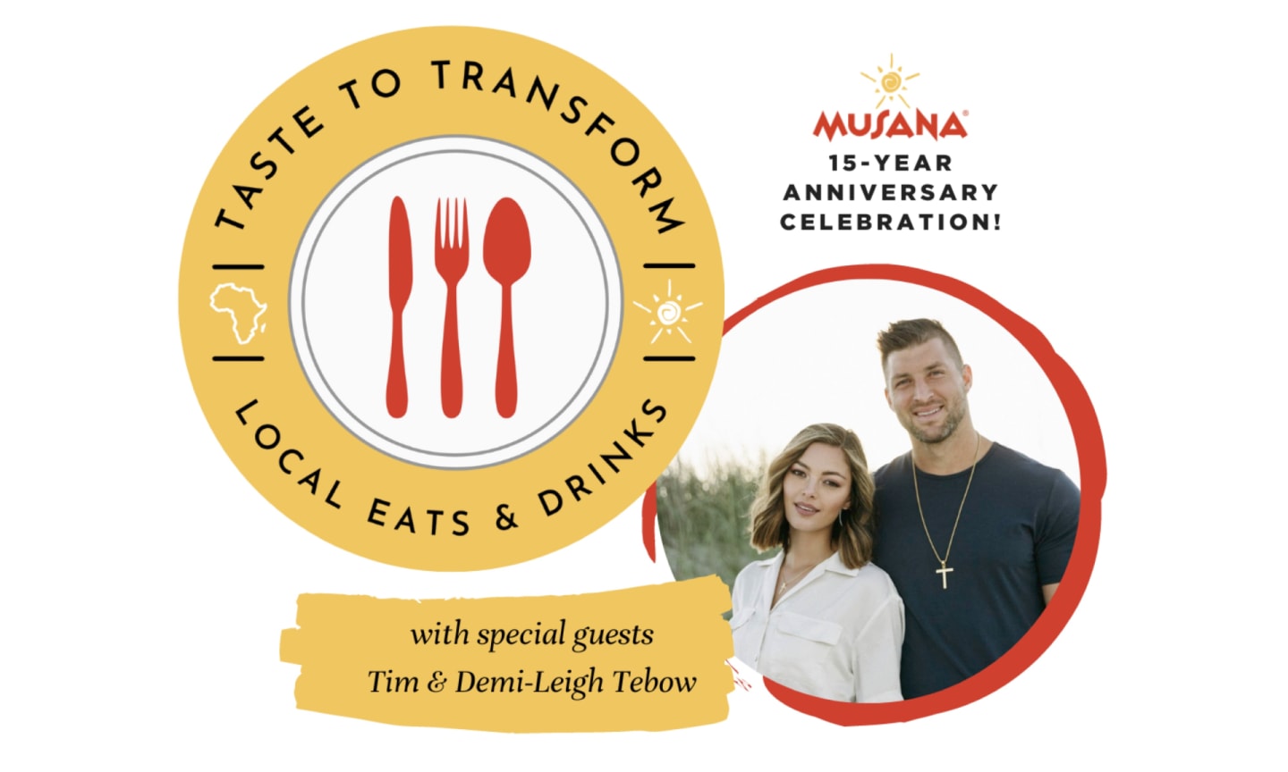 Have you heard? Musana’s annual “Taste to Transform” event, which also doubled as their 15th anniversary celebration, was a smashing success! Musana is a Community Development Organization that works on the behalf of the people of Uganda, and this year’s Taste to Transform event was held on September 16th at The Brighton with special guests Tim & Demi-Leigh Tebow and more.