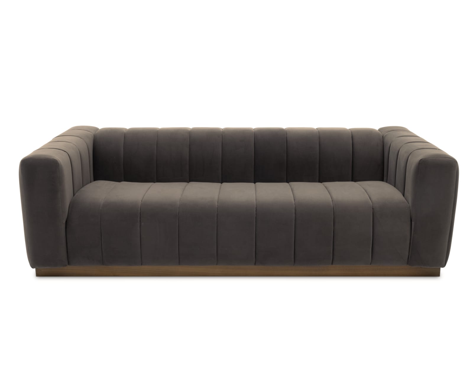 Above, the Laurent Channel Sofa brings modern elegance to any space, featuring plush channel-tufted seating, deep cushions, and luxe performance fabric.