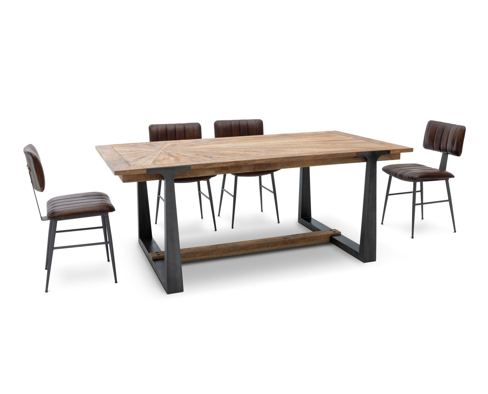 - Its standout feature? A stunning sunburst inlay on the Sol Dining Table that instantly brightens your dining space