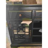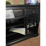 after several months of waiting for my tv stand I finally received it. when it arrived it was covered in Red scratches. I sent it back and was told it would be 7-10 for a replacement. almost a month later, the replacement finally arrived and it appears to be the same one I sent back. The model I saw on the floor and in the picture have no scratches and when I called the store in Denver I was assured that the scratches were not normal, however the gentleman who delivered the product stated that the store in Casper said that is how it supposed to look. needles to say I will not be back to this store. the 4 pictures attached are pictures of what I received and the other picture is what the product really is